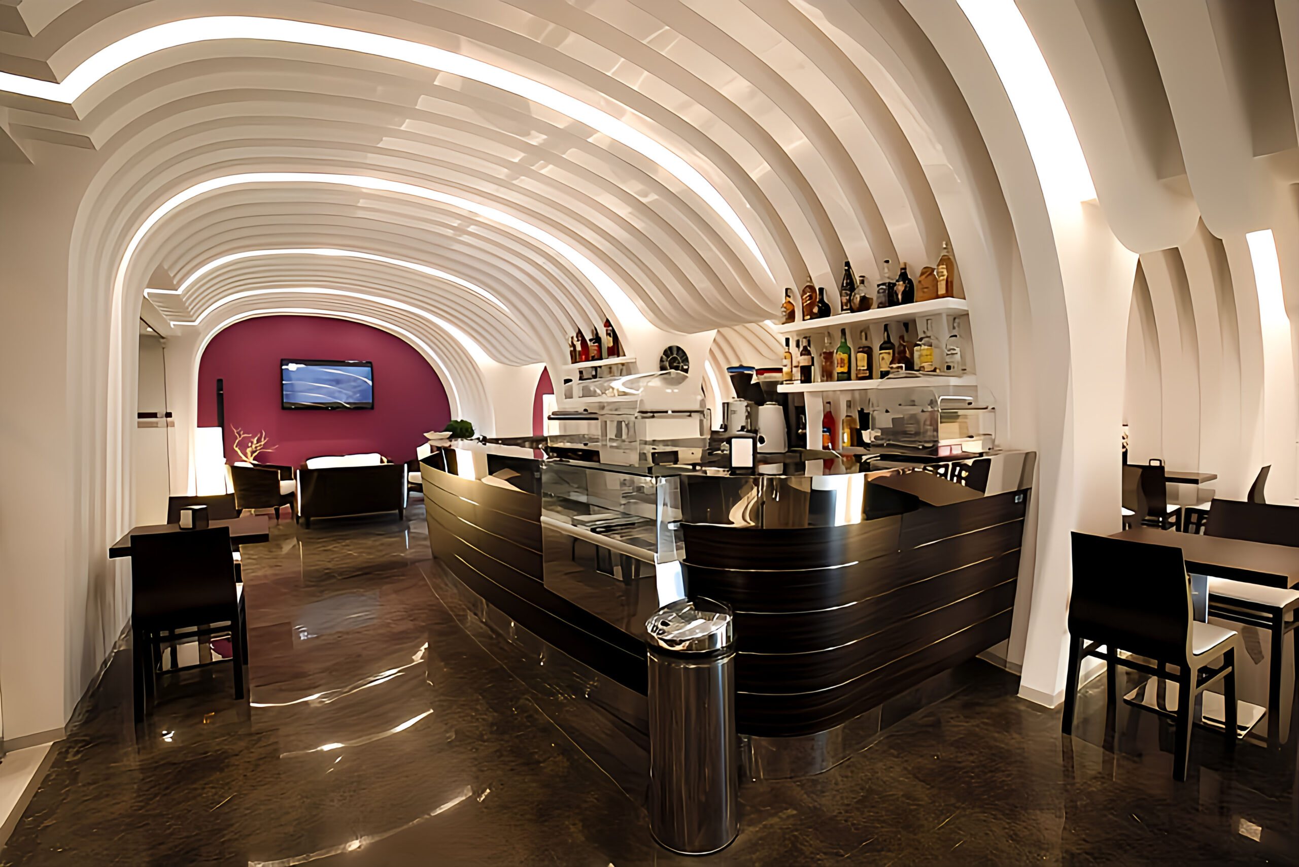Allestimento soffitto per locale commerciale parete 3D in polistirolo